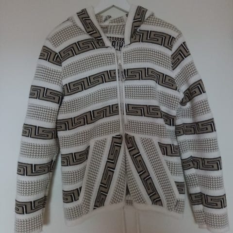 Myydään hyväkuntoinen neuletakki karvareunus hupulla.