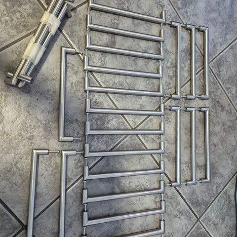 Uusia vetimiä ja ruuvit niihin. n.128mm reikäväli.