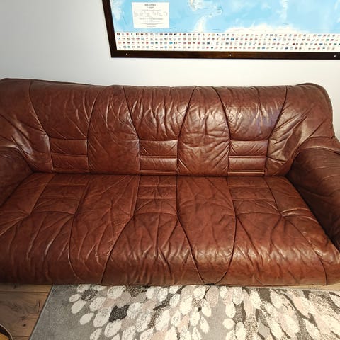 EI mitään lastulevyä. Massiivi puuta ja aitoa nahkaa. Erittäin hyväkuntoinen. Laatua ei enää tehdä. Nahka kuivunut, vaatii hoitoa.