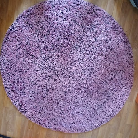 Korkeanukkainen harmaa pyöreä matto. Halkaisija 80 cm. Pohja ehjä! Muutenkin erittäin hyväkuntoinen. Nouto Pohjois-Haagasta, tai kuljetus lähialueella pientä korvausta vastaan. Säilötty rullalla, siksi pieni painauma. Laskeutuu kyllä takaisin muotoonsa.