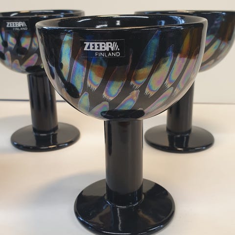 Zeebra Finland jalalliset keraamiset kulhot 6 kpl (1989, Jaana Turunen)