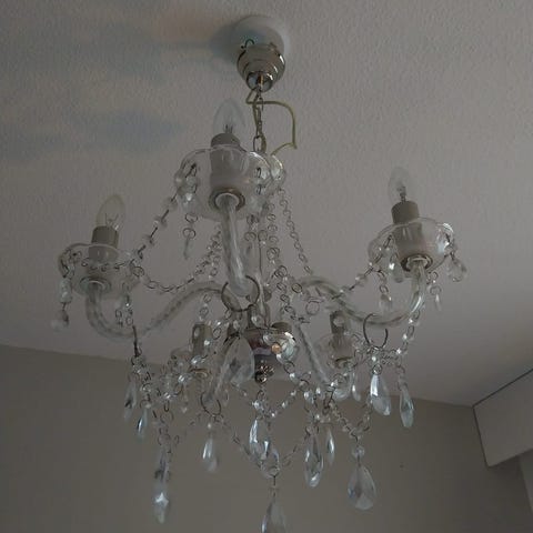 Näyttävän kokoinen kattovalaisin. Sopii hyvin korkeaan huoneeseen, pitkä ketju.
