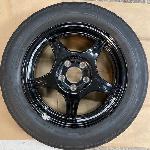 Alkuperäinen varapyörä kesärenkaalla peltivanteella.