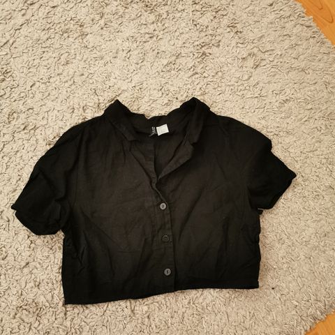 H&M musta 3/4-hihainen paita kokoa 38. Paidan hihoissa on napit. Edessä piilonapit keskiosassa. Paita on muotoiltu. Hyväkuntoinen paita, jolle ei montaa käyttökertaa tullut. Ei tahroja tai reikiä. Pesty hajusteettomasti. Savuton ja karvaton koti.