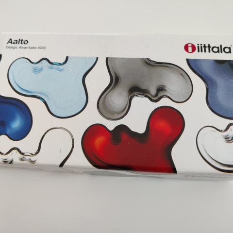 2 sinistä Aalto maljaa, koko 98 mm, toinen alkuperäis'pakkauksessa ja toinen ilman.