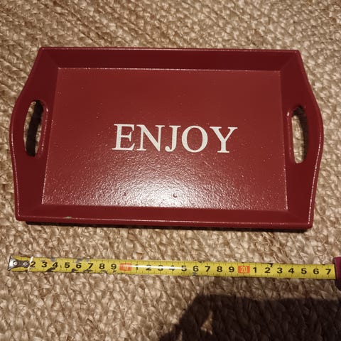 Koristeena ollut tarjotin. Voi käyttää jaloilla tai ilman.