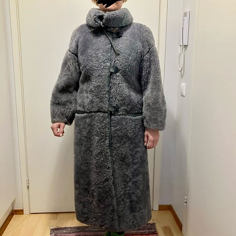 Melkein käyttämätön 60-luvun turkki. Varmaan teetetty jollain turkkurilla , koska ei ole mitään merkkiä. leveys helmasta n. 198 cm ja pituus olkasaumasta 130cm. tosi painava,ehkä siitä voisi muodistaa jotain uutta, esim. hihat on aika leveät.