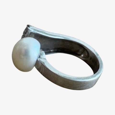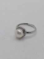 Hieno hopeinen sormus aidolla makeanveden helmellä. Koko on säädettävä. 925 hopeaa.