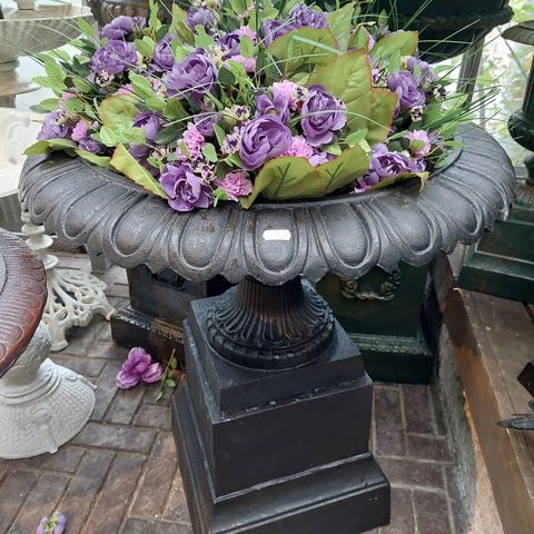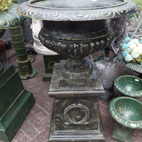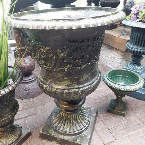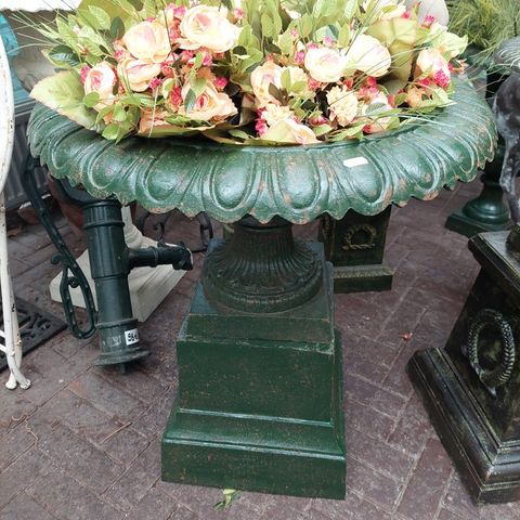 Iso näyttävä vihreän rautaruukku. Ruukku on valurautaa ja kestää ulkoilmaa.