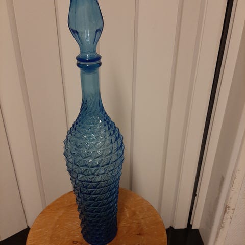 Erittäin kaunis, vihreä lasikarahvi. Karahvi ja korkki on ehjät. Nouto/postitus ostajan vastuulla tai särkyvä.