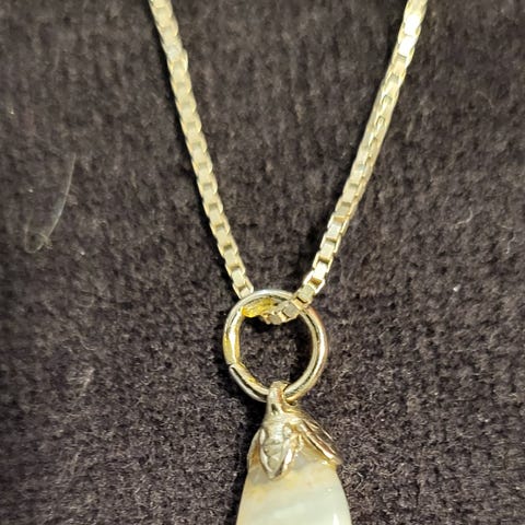Klassinen hopeaketju, venetsiaketju. Pituus noin 45 cm. Leveys noin 1 mm, sopii riipusketjuksi. Leimat 925 ja ilmeisesti epäselvä nimileima. Hyväkuntoinen ketju, hopean patinaa, ei kullattu.