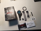 Mukana tulee alkuperäiset käyttämättömät kumirannekkeen osat sekä tuo itse Casioak-modkitti eli metalliranneke ja -runko, mallisukupolvea 4 (eli ei hölmöä "feikkikruunua".) Mukana myös rannekkeen jatkopalat ja pakkaus sekä alkuperäiset paperit.