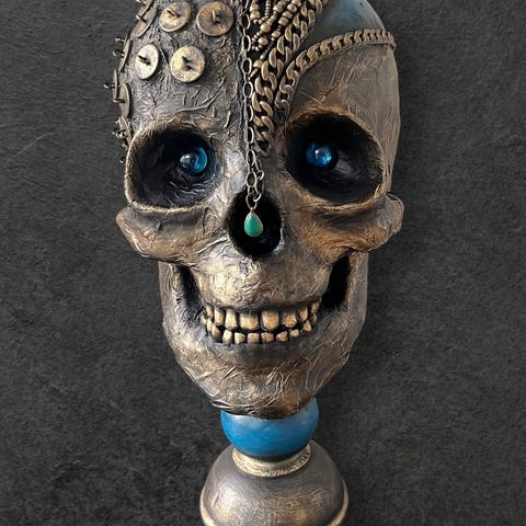 suuri puhvelin kallo lasimosaiikilla päällystetty. 70cm.sarvien väli korkeus myös noin 70cm. voidaan postittaa