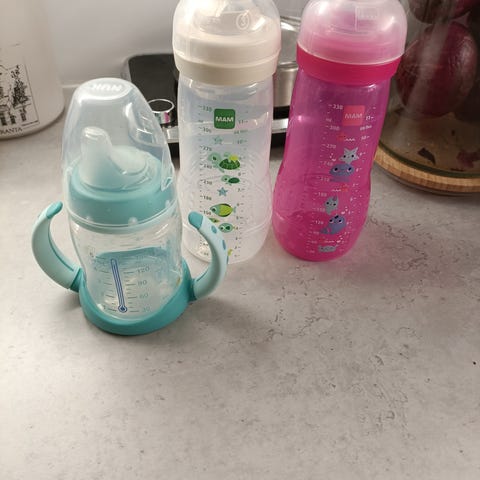 Annetaan muun ostoksen yhteydessä viisi uutta / kerran käytettyä tuttipulloa (yksi puuttuu kuvasta). Lähetettäessä riippuu mahtuuko pakettiin.