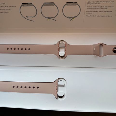Uusi ja käyttämätön aito Apple Watch 10-kellon mukana tullut 42 mm leveä ranneke. Rannekkeen koko on S/M. Väri on punahäivä ja malli on Sport Band silikoninen ranneke. Sama ranneke maksaa Apple-kaupassa 49 euroa.