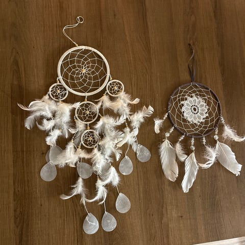 Myydään kuvanmukainen vaaleanpunainen unisieppari. Hennot värit, kaunis sisustusesine. Käsintehty. 8e