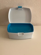 Myydään hyväkuntoinen lasten eväsrasia. Leveys 16-16.5cm, korkeus 6,5cm ja syvyys 10.5-11.5cm.