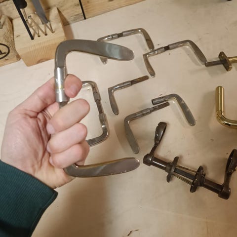 Myydään messinkinen oven kahva 1970-luvulta. Kahvan korkeus 27 mm ja pituus 105 mm. Nouto Jäälistä tai voidaan myös lähettää. Ostaja maksaa postikulut