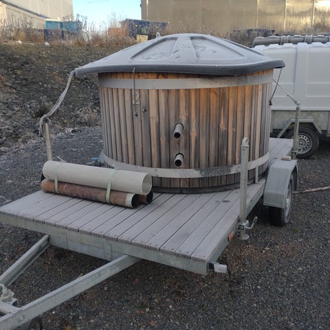 Lämmitysaika noin 3 tuntia puukaminalla. Paljukärryn siirtämiseen tarvitset vain peräkoukullisen auton sekä B-ajokortin.