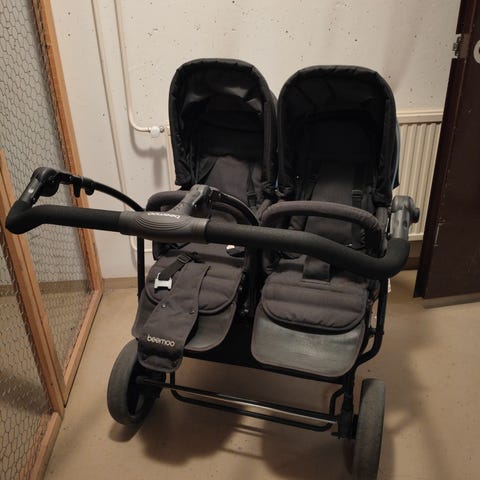Myydään mustat Beemoo merkkiset lastenvaunut/rattaat kahdelle lapselle. Mukaan vielä myös 1 kpl vaunukoppa (joka ei ole kuvassa), jonka vai vaihtaa kummalle puolelle vain.