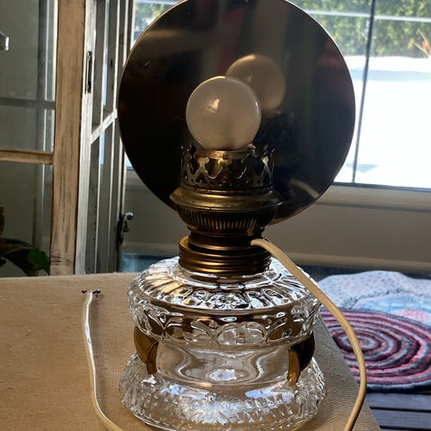 Öljylampusta, tai varhaisesta sähkölampusta peräisin 1800-1900-lukujen vaihteesta.