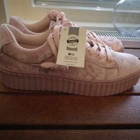 Sowhat merkkiset näyttävät lenkkarit. Koko 40, vastaa 39.5, ei siis kovin suuri.