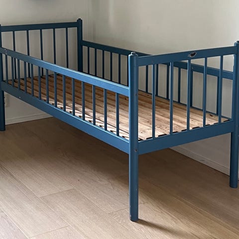 Toinen ollut käytössä 2 kk, toinen paketissa. Ostimme lapsille samanlaiset sängyt eivätkä ne mahtuneetkaan kivasti lastenhuoneeseen. Voin myös myydä erikseen.