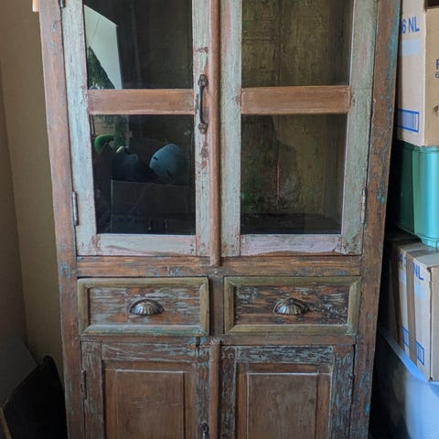 Tämä kaappi on aito vanhoista tiikkikalusteista yksilöllisesti kunnostettu kaluste. Yksilölliset poikkeavuudet kuten halkeamat, värierot sekä pintakäsittelystä johtuva ominaistuoksu kuuluvat kalusteen luonteeseen. Kaappi on vastaavassa kunnossa kuin ostettaessa ja myyn itselleni tarpeettomana.