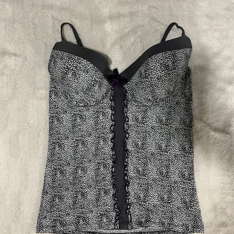 Pari kertaa kokeiltu, mutta varsinaista käyttöä vaille jäänyt toppi. Shapeware toppi. Tässä muotoilutuotteessa rintaliivin kuppiosa on jätetty pois, jotta voit pukea päällesi päällyspukeutumiseen kulloinkin sopivat rintaliivit.