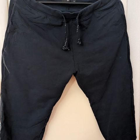Mustat collegecaprit, koko M, nauha kiinnitys, taskut, resorit lahkeissa, ehjät/siistit