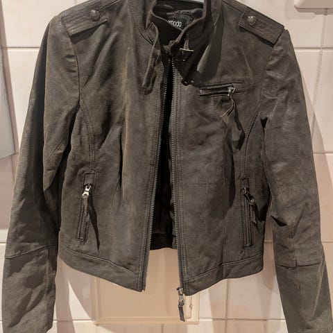 Vero Modan takki, joka on aitoa nahkaa. Koko 36, kunto moitteton. Postitus tai ToriDilli.
