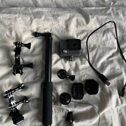hyvässä kunnossa oleva gopro mihin mukaan esim powerbank mikä toimii kanssa käsipidikkeenä kameralle ja muitakin lisäosia