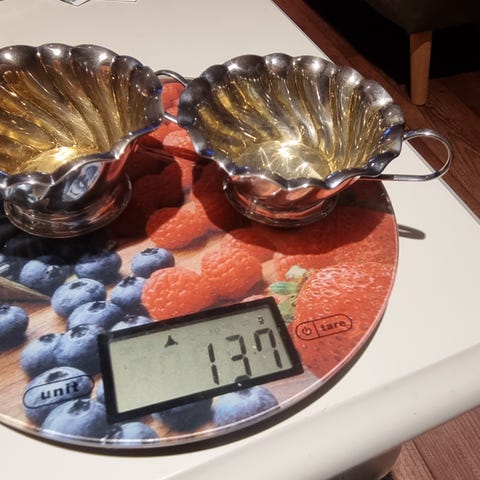 Kuvien hopeiset 813 kermakko ja sokerikko kiertoon. Kiillottamalla ja puunaamalla saa varmasti uudenveroisiksi, punaiset jää ostajalle.