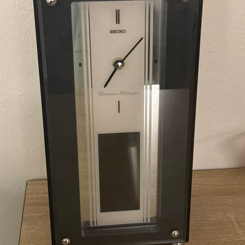 Seinäkello Seiko Westminster-Whittington päivyrillä ja heilurilla.