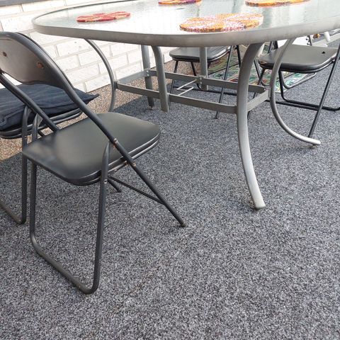 Kuvan mukainen terassi pöytä 4x tuolit. Tukeva ja hyvässä kunnossa kaikki osat, mutta,