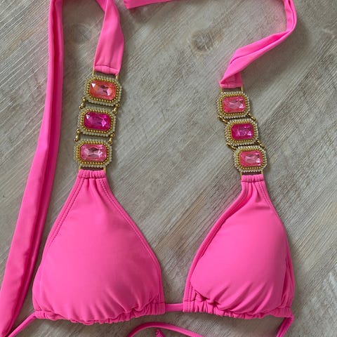 Näissä on melko vahva hajuveden tuoksu. Muuten hyväkuntoiset. Binikit - punaiset - kukkakuvio - koko S-M.