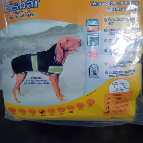 Uudenveroinen koiran takki. Selän pituus 40cm.