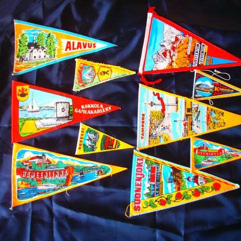 80-luvulta viirejä USA:sta ja muualta. Materiaali huopaa (paitsi Middlesbrough kangasta)