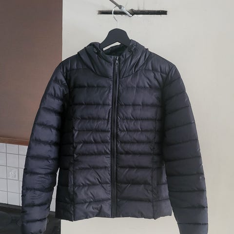 Siistikuntoinen club a toppatakki. Vetoketjulliset taskut, irroitettava ja kiristettävä huppu. Hihoissa lumilukot.