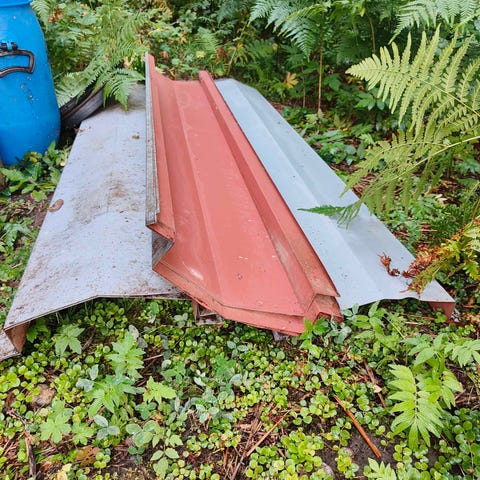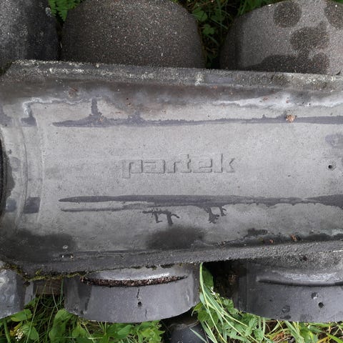 Eli käytettyjä harjatiiliä, ehjiä mutta hieman on sammalta kertynyt pintaan.