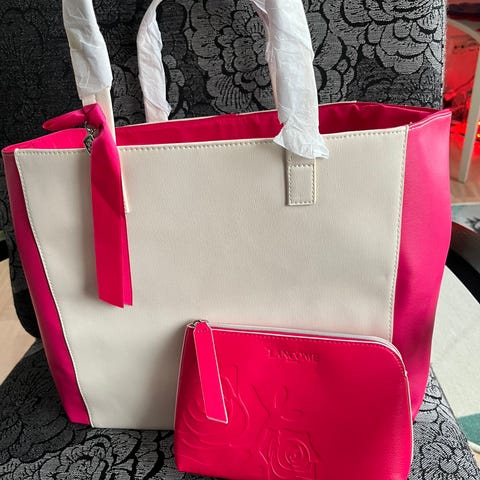 Lancome iltalaukku satiini pinkki valkoinen