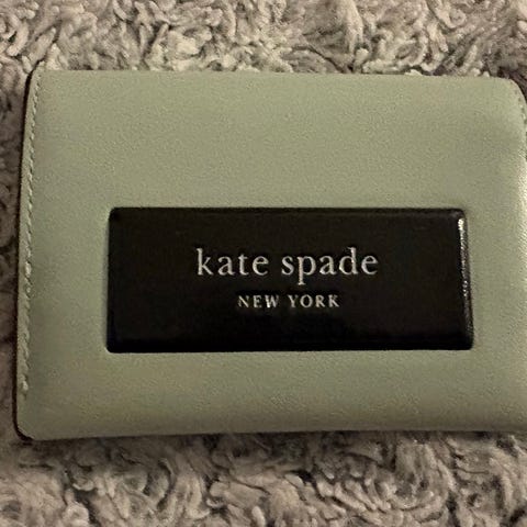 Kate Spaden korttikotelo, jossa 6 korttipaikkaa ja keskitasku. Mitat 8 x 10 cm. On uusi, ovh 90 e.