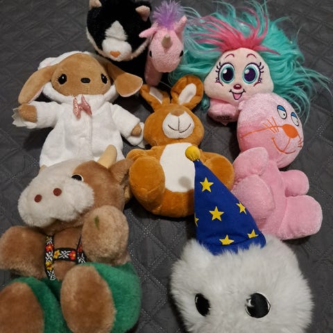Myydään kuvan pehmolelut mieluiten samalle. Patterien vaihto ostajalle.