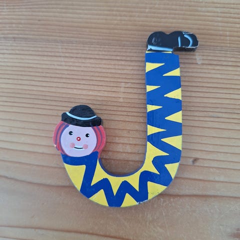 Tässä soma puinen lapsen koriste: voi laittaa roikkumaan "minne vain". Kauniita olentoja - ja keskellä alhaalla metallia, joista pientä "kilinä-ääntä" kaikesta liikkeestä seurauksena :-)