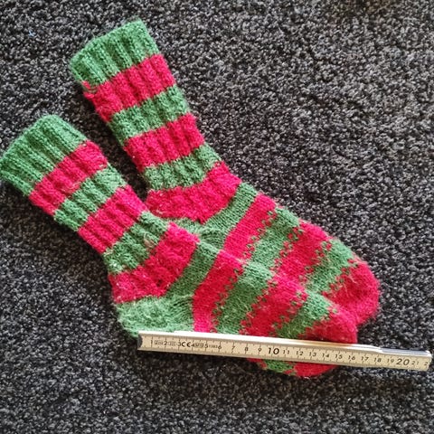 Myydään Diy villasukat. Lankaa en muista enää. Vain pesty, mutta on meille ensi talvelle jo pienet. Mittaa kuvassa. Sydän kuvio.