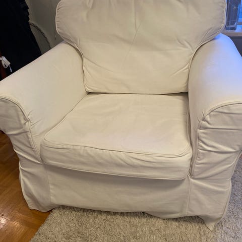 Myydään ok kuntoinen nojatuoli tilanpuutteen vuoksi. Ehjä, kankaassa istuinosassa hiukan nukkaa(kuva 3)