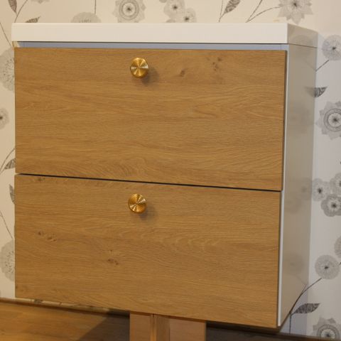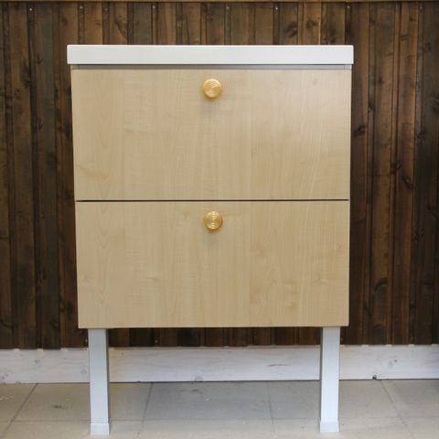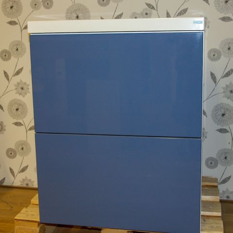 Allaskaappi kiiltävillä marmorilaminaatti ovilla.