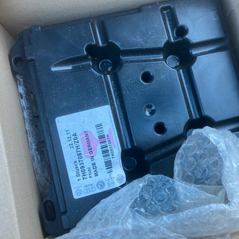 Transporterin uusi ABS-ohjainlaite numerolla 7H0907375N. Joku kirjoittanut päälle T4, mutta osanumeron perusteella alkupään T5 boksi eli 03-05 tienoilla valmistetuista löytyy tätä ainakin nelivetomalleista kuusilovisella manuaaliaskilla. Osanumeron luonnollisesti täsmättävä.