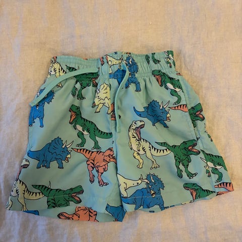 Myydään poikien dinosaurus kuvioiset shortsit. Nopeasti kuivuvaa materiaalia. H&M. Kokomerkintä EUR 98/104, US 2-4Y.