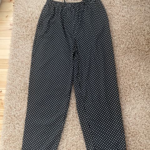 Myydään ruudulliset housut. Pituus 93 cm. Lahkeet eivät ole täyspitkät. Kangas joustavaa materiaalia.